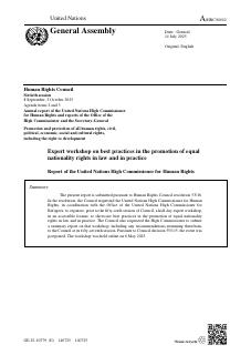 Expert workshop on best practices in the promotion of equal nationality rights in law and in practice Type of Resource: Report Theme: Discrimination Region: Global / Other View