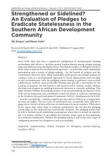 Strengthened or Sidelined? An Evaluation of Pledges to Eradicate Statelessness in the Southern African Development Community